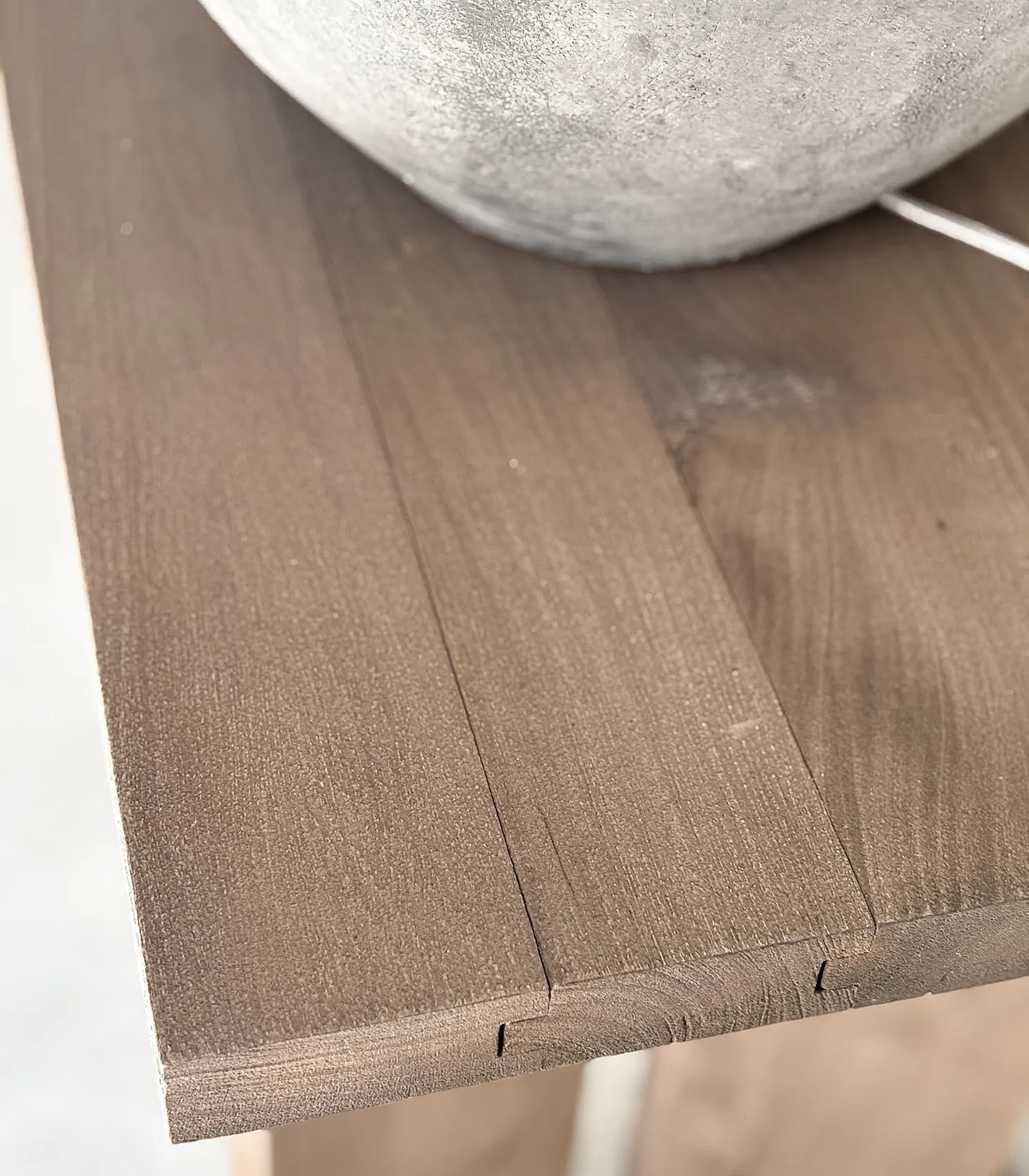 Realizada en maderas guayubira y  maciza, una madera natural de gran nobleza, esta pieza se distingue por sus delicados encastres visibles en las patas, que realzan su carácter artesanal. La terminación en tono tostado conserva la textura original de la madera, aportando calidez y sofisticación a cualquier espacio.